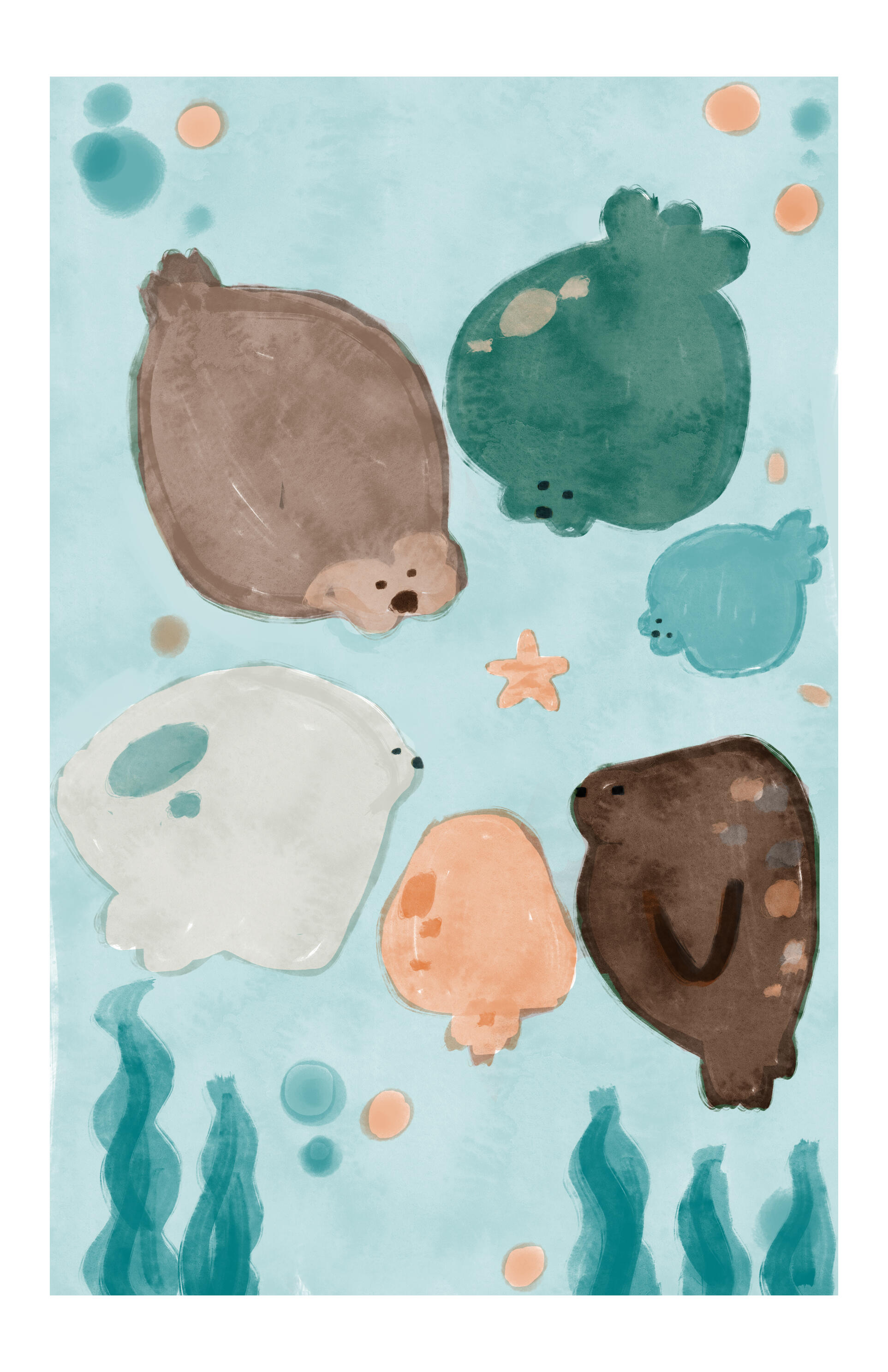 "seal huddle" (2025, riso print) 5.5 inches x 8.5 inches digital, Photoshop